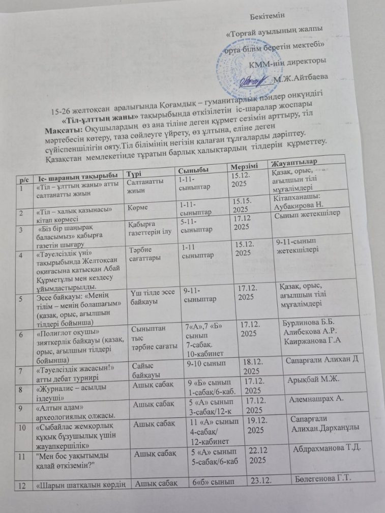АҚМОЛА ОБЛЫСЫ БІЛІМ БАСҚАРМАСЫНЫҢ ЕРЕЙМЕНАТАУ АУДАНЫ БОЙЫНША БІЛІМ БӨЛІМІ "ТОРҒАЙ АУЫЛЫНЫҢ ЖАЛПЫ ОРТА БІЛІМ БЕРЕТІН МЕКТЕБІ" КОММУНАЛДЫҚ МЕМЛЕКЕТТІК МЕКЕМЕСІ